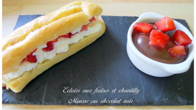 Servez les éclairs accompagnées de la mousse au chocolat.