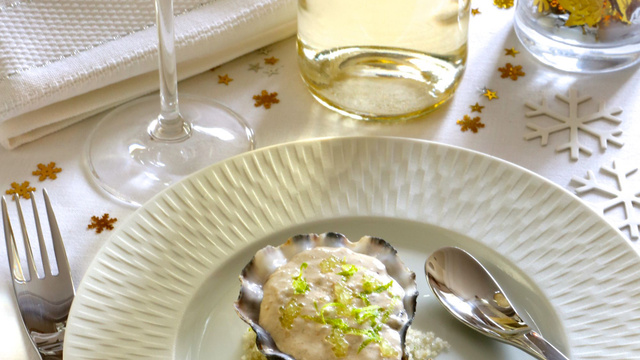 Conseils d'Ophélie Loubersac, oenologue : Cette recette raffinée mettra en exergue toute la densité et l’élégance du Mouton Cadet blanc 2015, apportées par le Sémillon dans cet assemblage. L’écume viendra s’associer au citron vert et au citron caviar pour donner à la fin de bouche une légèreté et une fraîcheur incomparables.