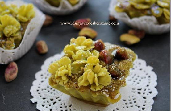 Une douceur tout de vert vetue où l'amande et la pistache se marient à la perfection. Une gourmandise façonnée avec une pâte sablée vanillée, un dessert parfumé au miel et à la fleur d'oranger. Une gourmandise haute en couleur et en saveur qui ravira les papilles et les pupilles.