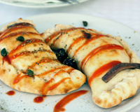 Petits chaussons garnis de thon, d'anchois, de tomates, d'oignon, d'ail, de câpres et d'épices.