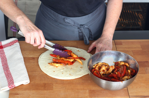 7Répartissez le mélange au poulet au centre des 6 tortillas.