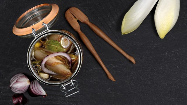Coupez l'oignon rouge en lamelles et déposez-les dans le bocal.