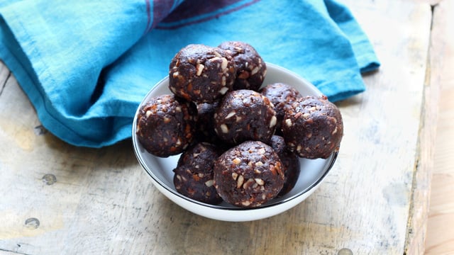 Choisissez des dattes bien moelleuses pour réussir ces bouchées. Pour cette recette nous avons choisi des dattes de la variété Deglet estampillées "dattes moelleuses".
