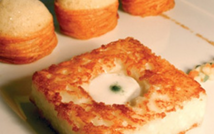 - 'Plaquez" le risotto et quand il est froid, détaillez-le en carré. Réservez au frais.