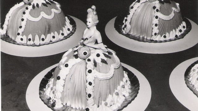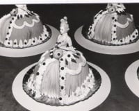 En fait - il s'agît de garnir le moule demi-sphérique d'une composition ayant assez de tenue pour être décorée sur un carton ou assiette. - - 2Décoration :Une fois le moule demi-sphérique garni et démoulé sur carton ou assiette - poser au milieu du sommet - le buste de Marquise - recouvrir de pâte d'amandes pour former une crinoline - décorer avec de la crème - disposer avec harmonie des motifs décoratifs - pétales de violettes - boules de mimosas -dragées or ou autres.