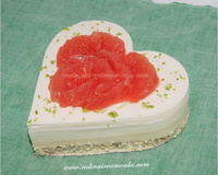 Préchauffer le four à 180°C. Séparer les blancs des jaunes d'œufs et monter les blancs en neige. Fouetter le beurre et le sucre afin d'obtenir un mélange homogène. Ajouter les jaunes d'œufs, la farine, le sel, les jus, les zeste de citron et d'orange. Terminer par mélanger le tout avec les blancs d'œufs montés en neige. Verser la préparation dans un cadre "cœur". Enfourner 12 min.