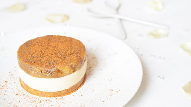 J"ai voulu vous proposer quelque chose d"à la fois ultra gourmand et ultra sain, un entremets à base de poires, avec des notes caramélisées, apportées notamment par le sucre de fleur de coco et la caroube du Pérou.Ces entremets se réalisent en trois étapes. D"abord un biscuit cru, puis une crème d"amande (volontairement peu sucrée, de manière à équilibrer l"ensemble), pour finir avec une compotée de poires. Vous pouvez les présenter à l"assiette, montés à l"aide de cercles, ou dans des verrines, pour un dressage plus simple et plus rapide...