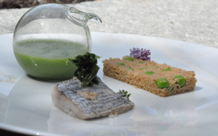 Cercler dans le fond de l'assiette, poser le poisson une fois cuit à coté.Soit vous pouvez verser le gaspacho dessus ou alors je conseille de le laisser dans un récipient pour que chacun se serve du gaspacho bien frais.