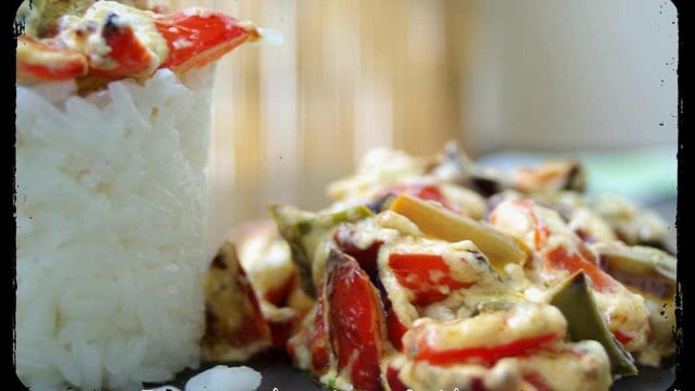 Faites revenir les poivrons coupez en petits morceaux dans une poêle avec de l'huile d'olive, une fois cuits salez et poivrez.