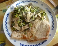 Ajouter dans la poële les brocolis avec la crème et les champignons.