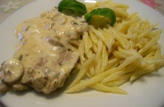 Pas besoin de fromage sur les pâtes, la sauce est crémeuse à souhait avec un léger goût de Marsala.