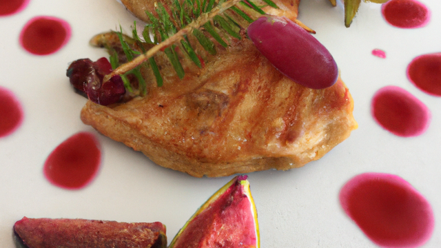 Disposez les tranches de foie gras poêlées dans les assiettes et parsemez leur périphérie avec les fruits. Terminez en les nappant de sauce et disposez quelques pluches de cerfeuil. Régalez-vous!