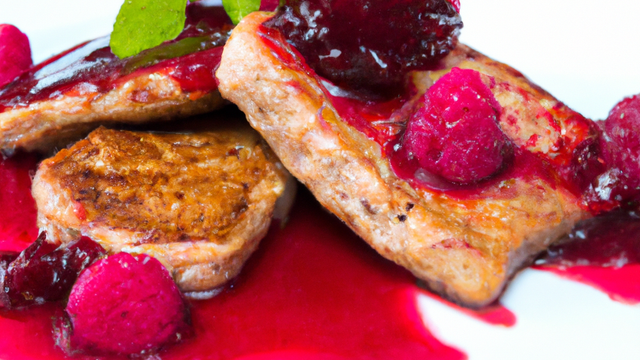 De délicieuses escalopes de foie gras simplement poêlées servies avec une délicate sauce de framboises.