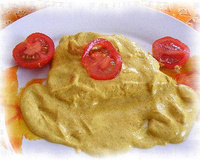 Escalopes de poulet à la crème, curry et tomates.