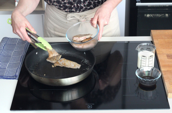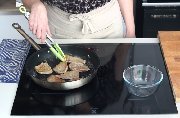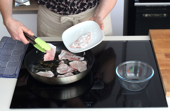 Coupez chaque escalope en 3 à 4 morceaux, d'environ 30 g.