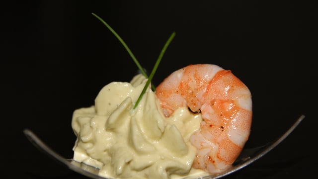Mousse d'avocat onctueuse agrémentée de sa crevette parfumée...