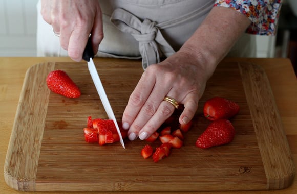 2Coupez le reste des fraises en deux pour le coulis.