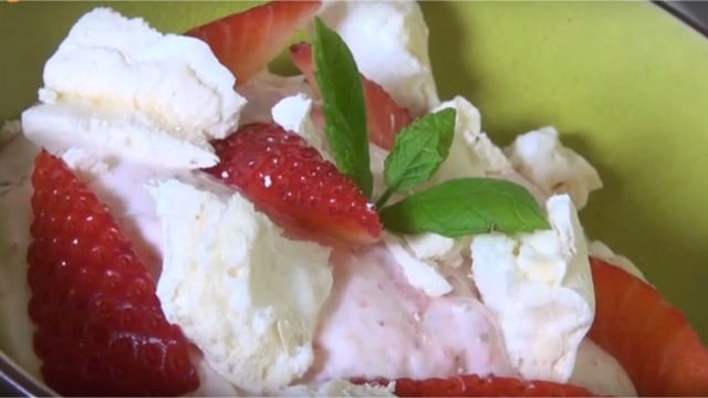 L'Eton Mess, un classique en matière de desserts aux fraises. De la crème, des fraises et des éclats de meringue, Hummm qu'est-ce que c'est bon, vous connaissez ?