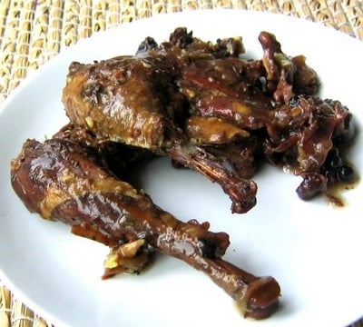 Celui de la photo a cuit près de 5 heures. A ce stade, le jus de raisin avait confit la viande, c'était vraiment délicieux.