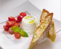 Démoulez la faisselle dans une assiette. Déposez autour les tomates cerises assaisonnées. Saupoudrez de fleur de sel et de poivre mignonnette. Versez un trait d'huile d'olive sur les faisselles.