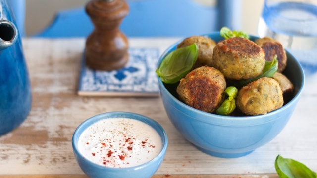 Associés ici au basilic, les falafels peuvent être aromatisés de persil, de ciboulette ou de coriandre, selon l’envie du moment. Dorés à la poêle, les falafels sont plus digestes que préparés en friture, pour un résultat gustatif tout aussi intéressant.