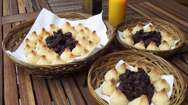 Enfourner et cuire à 200º une dizaine de minutes. La base et la pointe des pyramides de coco doit être dorée.