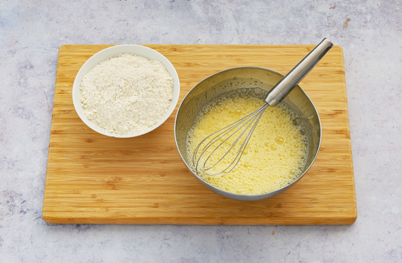 Dans un bol, fouettez les oeufs avec le sucre, jusqu'à ce que le mélange soit mousseux.