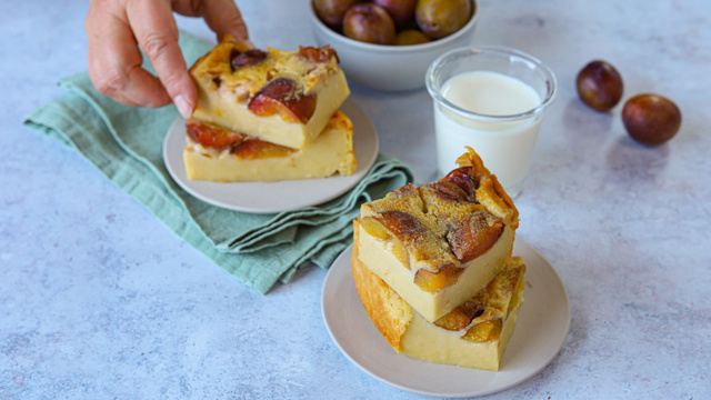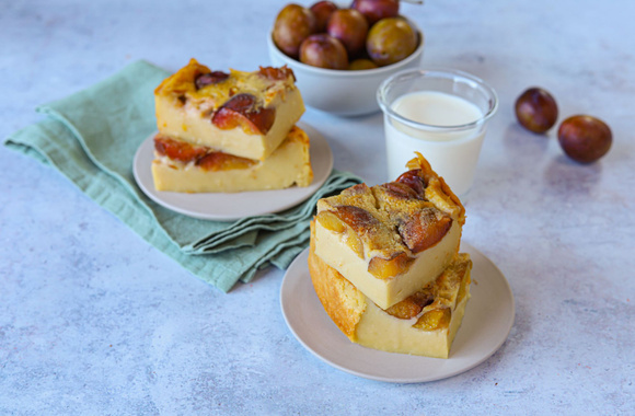 Pour la saison des prunes, on vous propose cette variante du fameux far breton, dans lequel nous avons mis des prunes fraîches à la place des pruneaux. Les prunes apportent une touche de fraîcheur très agréable à ce gâteau, facile à préparer.