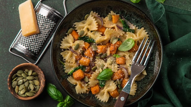 Le combo des farfalle et du potimarron encore fondant = une recette pleine de saveurs.
