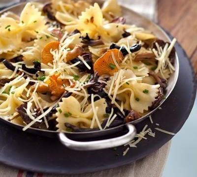 Cuire les farfalle al dente dans une grande quantité d'eau bouillante salée en respectant le temps de cuisson indiqué sur l'emballage. Egoutter les farfalle puis les verser dans la poêle contenant les champignons en ajoutant le beurre restant et les 3/4 du Gusto Intenso.