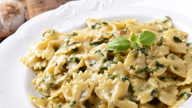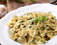 Mélangez la préparation aux épinards avec les farfalle et servez aussitôt.