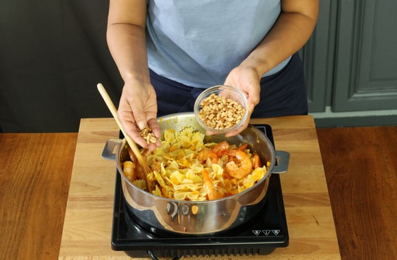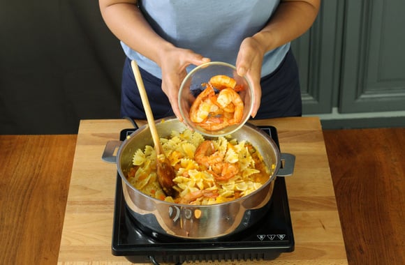 10Ajoutez les queues de gambas. Mélangez de nouveau.