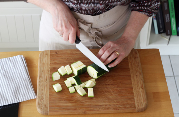 5Coupez la courgette en dés puis faites-les cuire à la vapeur.