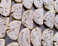 Mélanger tous les ingrédients pour obtenir une pâte. Couper la pâte en rondelles comme sur la photo.