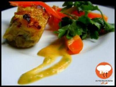 Disposez les roulés dans un plat à gratin, saupoudrez de sésame.