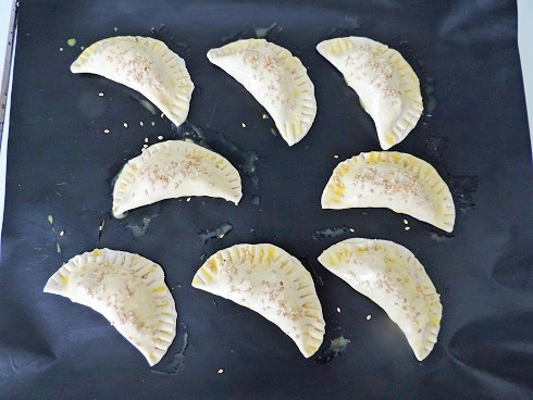 4Badigeonner la surface d'oeuf battu et saupoudrez de graines de sésame.