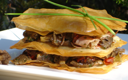 Maintenant que tout le monde connait la feuille filo pour son côté extrêmement croustillant, léger et facile d'utilisation, en un tour de main, vous pourrez réaliser ce feuilleté, agrémenté de jambon fumé et de tomate séchée.