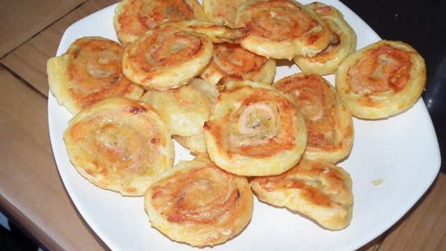 Des feuilletés avec du saumon et du gruyère.