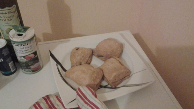 Découper des rectangles et déposez le mélange au centre de chacun. refermez ensuite.