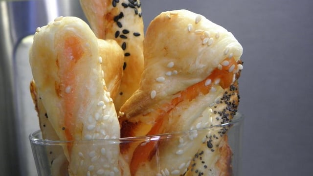 Couper des fines lamelles de 1/2 cm de diamètre et les déposer sur une plaque de cuisson en les torsadant.