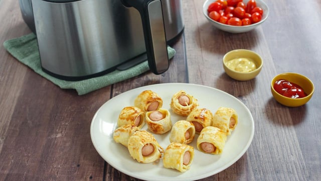 Pour un apéro gourmand qui va beaucoup plaire aux enfants, on vous propose de réaliser des mini feuilletées de saucisses mais en version moins grasse grâce à une cuisson au Air Fryer ! Avec un peu de moutarde (ou de ketchup), c’est un délice à picorer du bout des doigts.