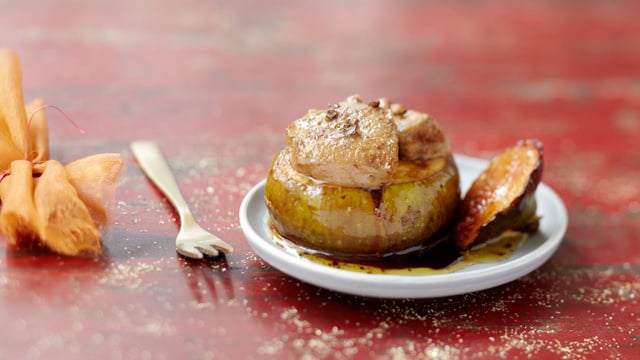 Insérez un cube de foie gras dans chaque figue et remettez les chapeaux. Dans un bol, mélangez le vinaigre et le sirop d'érable avec les 4 épices. Salez, poivrez et nappez les figues de ce mélange. Enfournez pour 25 minutes en arrosant régulièrement avec le jus. Dégustez chaud !