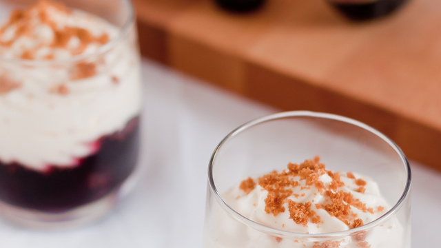 Déposer les figues dans les verrines, ajouter le vin et garnir de crème à l'aide d'une poche à douille cannelée.