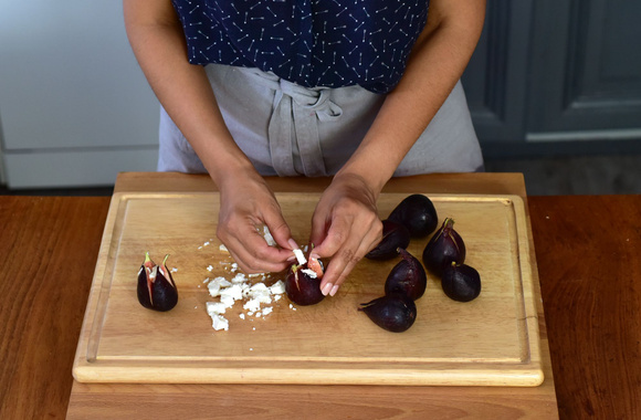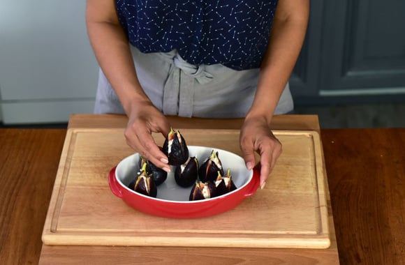 6Placez-les sur un plat à gratin. Faites cuire les figues pendant 5 minutes au four sur position grill.