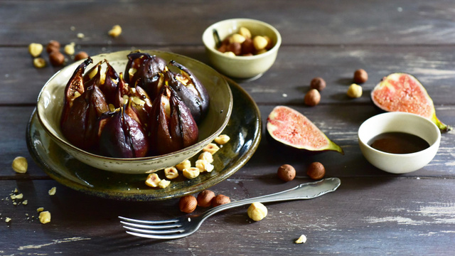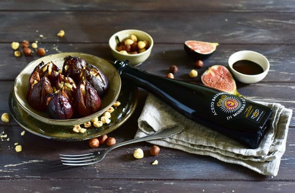 7Retirez-les du four, disposez quelques noisettes dessus et versez le vinaigre balsamique par-dessus.
