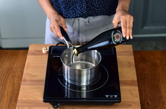 2Mettez le vinaigre balsamique dans une casserole et laissez réduire pendant 10 minutes.