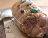 Faites de même avec les feuilles de basilic (pour moi, mon boucher m'avait fait des entailles en dessous pour que ce soit plus facile à la découpe. C'est dans ces entailles que j'ai glissé les feuilles).