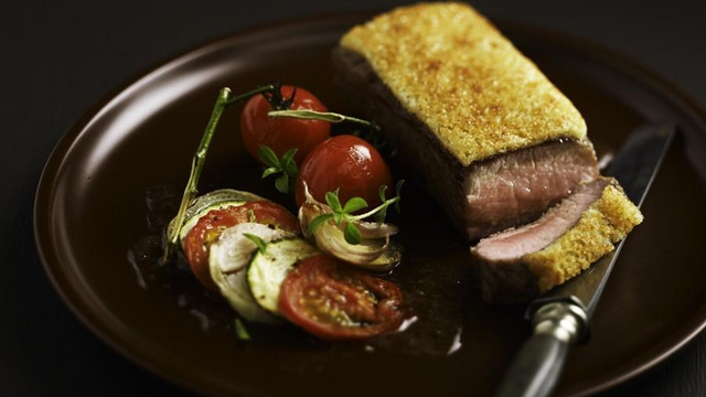 Un tian d'aubergine ou de légumes provençaux accompagnent au mieux vos filets d'agneau.