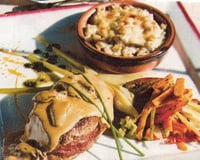 Servir dans chaque assiette la viande arrosée avec la sauce aux morilles et des légumes au basilic