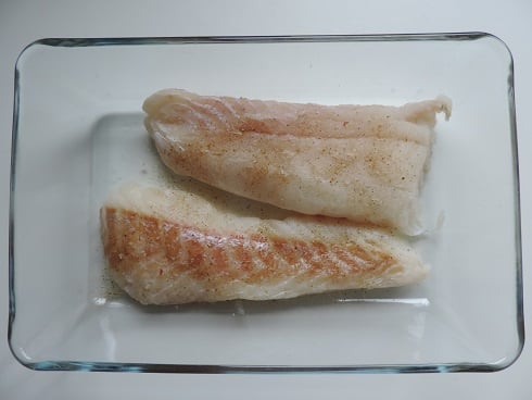1Dans un plat légèrement huilé, placer les filets de cabillaud. Les assaisonner de fleur de sel, poivre et fenouil moulu. Enfourner dans un four préchauffé à 85°C pendant 30min.